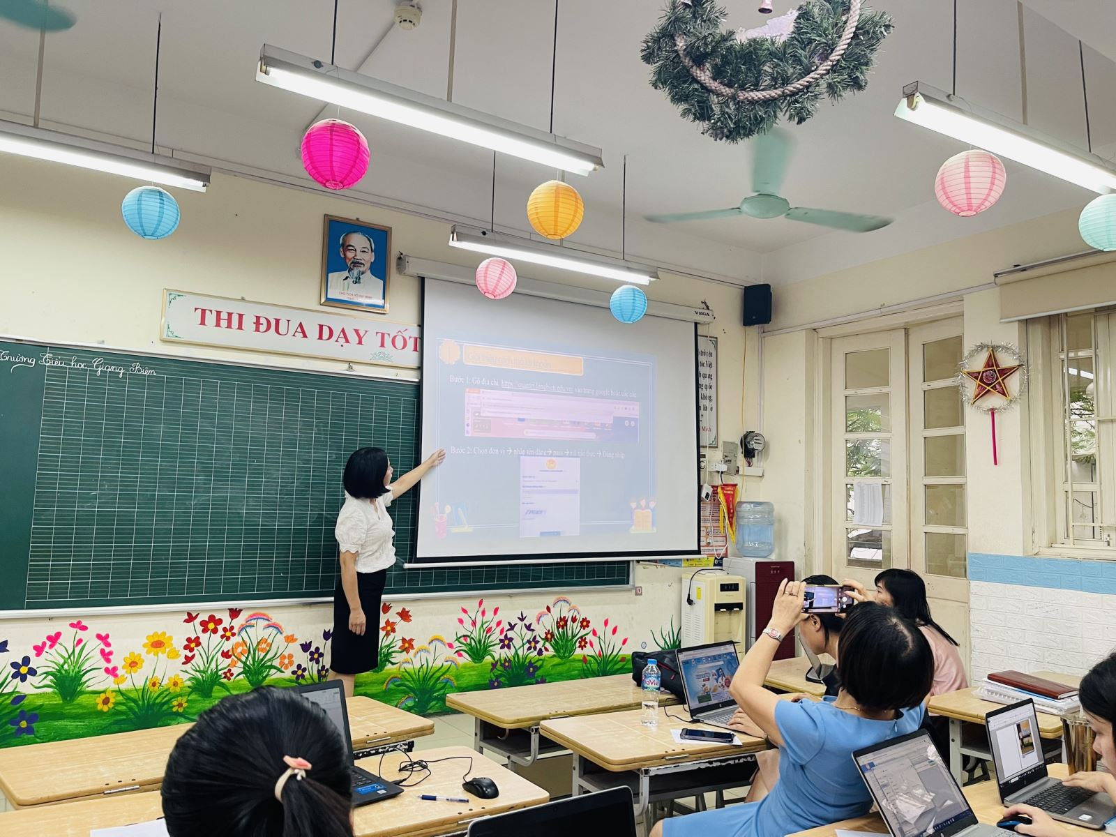 Tại buổi chuyên đề , cô giáo Lê Thị Hậu – Giáo viên lớp 3A2 đã hướng dẫn các cán bộ giáo viên công nhân viên nhà trường về kĩ năng viết, soạn và đăng bài trên cổng thông tin nhà trường.
