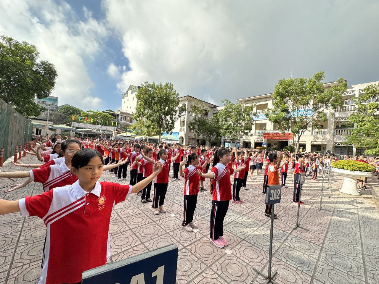 Thực hiện nhiệm vụ năm học 2023 - 2024, thực hiện thông báo số 82/TB-THGB về việc tổ chức tập thể dục buổi sáng và tổ chức các trò chơi dân gian cho các em học sinh, mỗi sáng thứ 3 thứ 5 các em học sinh trường Tiểu học Giang Biên đã rất hào hứng tham gia tập thể dục với các động tác cơ bản phát triển chung. Ngay sau tiếng trống tập trung, các em học sinh trong toàn trường đã đứng đúng vị trí của lớp mình. Các em nhanh chóng dàn hàng để đứng với khoảng cách phù hợp cho việc tập các động tác thể dục. Trên khuôn mặt của các em đều rạng rỡ nụ cười, khoan khoái dễ chịu khi được vận động buổi sáng. Chỉ sau chưa đầy 15 phút vận động đầu giờ, các em đều thấy vui vẻ sẵn sàng bước vào một ngày học tập đầy hứng khởi.