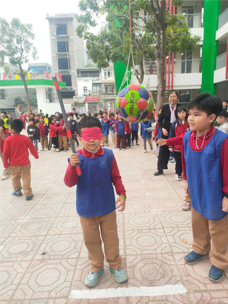 Để tạo niềm say mê, tinh thần đoàn kết của các em học sinh khi tham gia chơi, nhà trường đã chọn lọc và đưa vào nhóm trò chơi vận động giúp tăng cường sức khỏe, thể chất cho các bạn học sinh như: Kéo co, bịt mắt bắt vịt, nhảy bao bố...